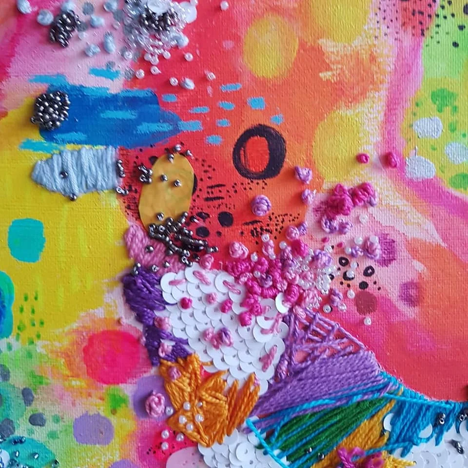 As a multidisciplinary artist, Ailish enjoys using a wide variety of media to create her visual art. From paint, to recycled plastic and textiles, she is never afraid to experiment with new media. Ailish has always had a interest in collage and so her overarching style incorporates elements of collage, even within her painted works. Her love of collage is closely tied to her music experiences, as all music is created from combining simple units of pitch and rhythm. Because of this, Ailish enjoys creating visual work that is made of many small parts and layers that culminate in a harmonious whole.